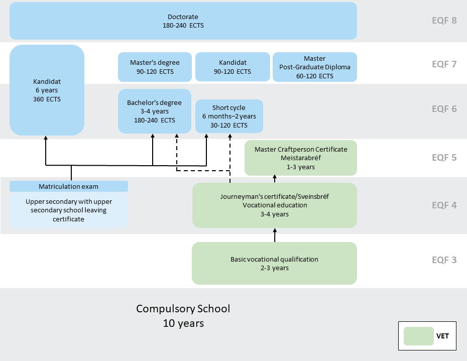 - Continuing Education, e.g. the Master Crafts Certificate at level 5 in the EQF.